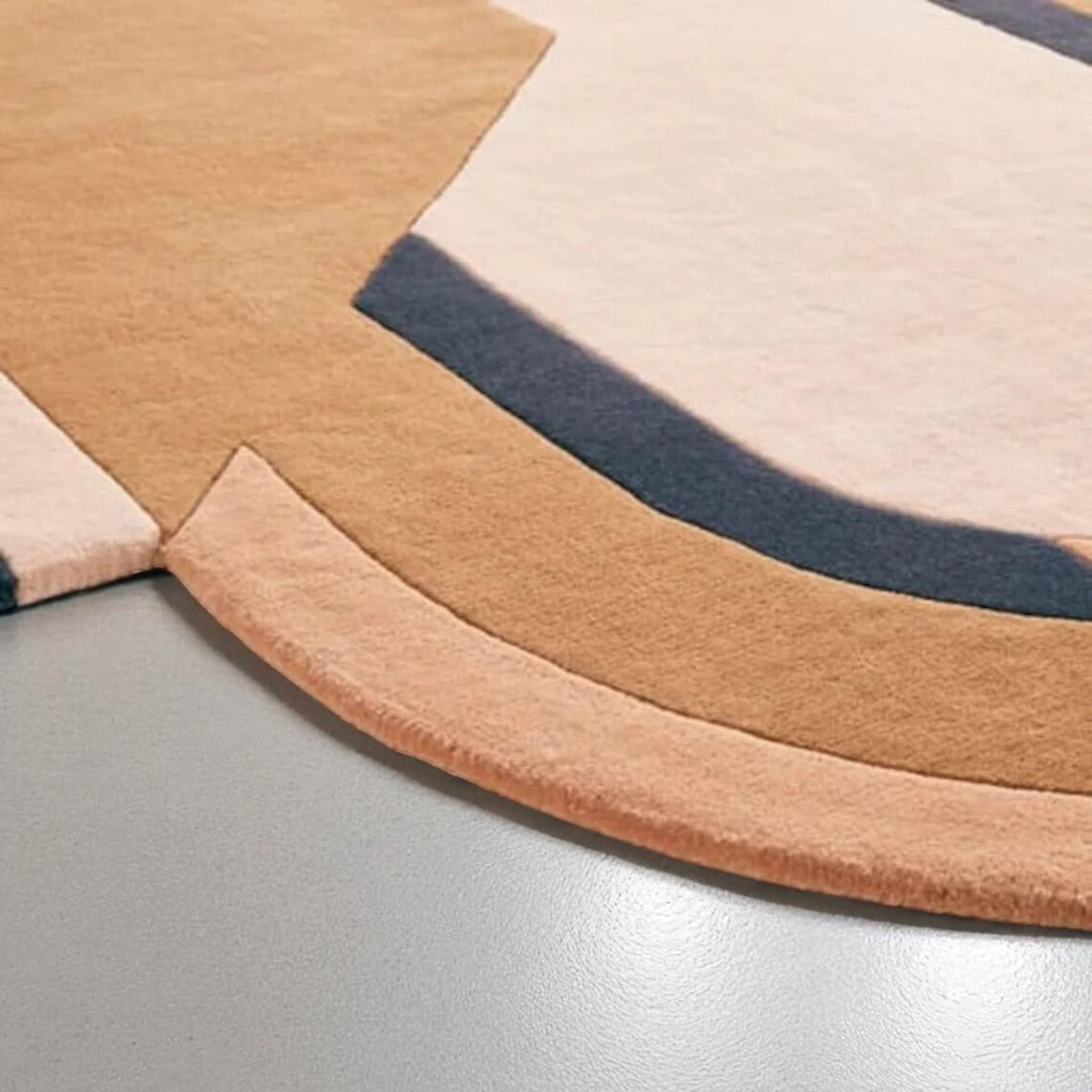 Elevate your home with this Geometric Abstract Wool Carpet in Beige, Brown & Blue, a modern hand tufted area rug that blends art and function beautifully. Designed with bold geometric shapes and an irregular layout, this rug makes a striking statement while adding warmth and texture to your space.