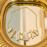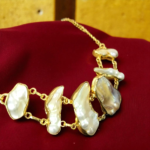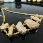 Inspired by the untamed beauty of the sea, this Golden Shoreline Baroque Pearl Brass Necklace captures the raw elegance of nature in every curve and shimmer. Featuring a striking arrangement of irregularly shaped baroque pearls, each framed in a warm, handcrafted gold-finish brass setting, this necklace celebrates uniqueness and artisanal charm.
