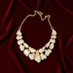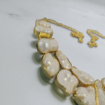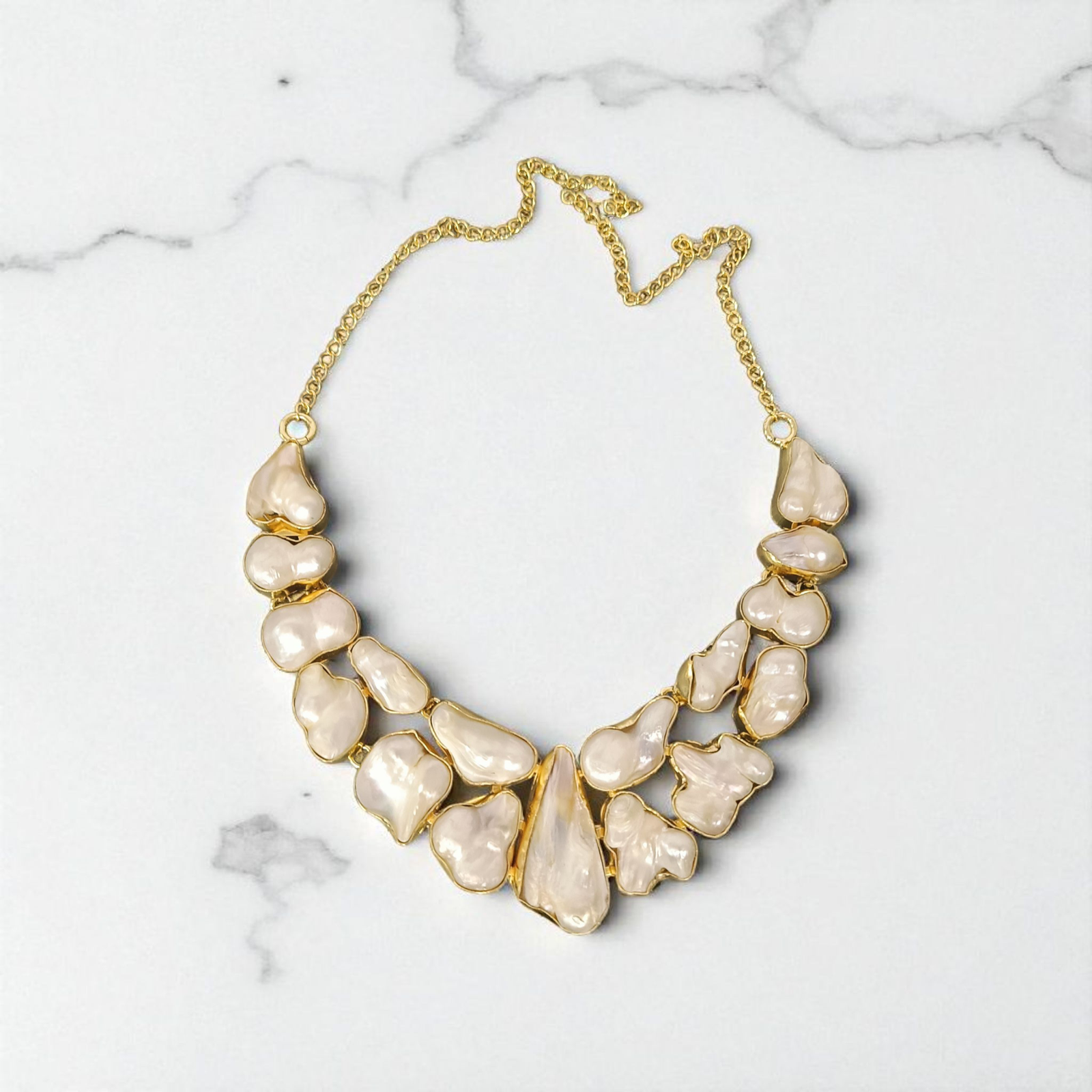 Elevate your look with the timeless elegance of the Golden Tide Baroque Pearl Brass Statement Necklace. Designed to captivate, this unique piece showcases a stunning collection of irregular baroque pearls delicately set in hand-polished gold-tone brass. The bold yet organic form of each pearl evokes the serene power of ocean tides, making this necklace a show-stopping centerpiece for any outfit.