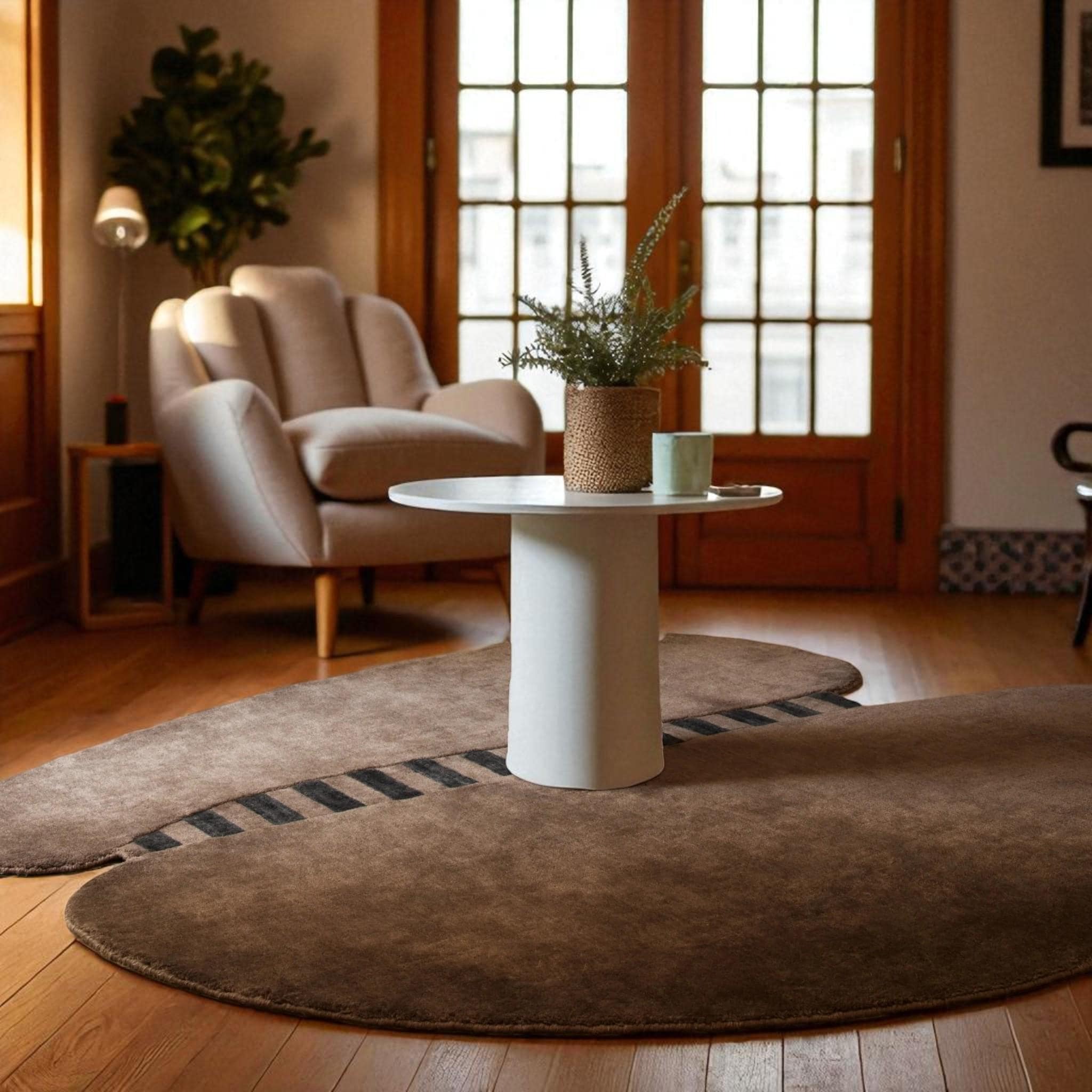 Chocolate Brown Abstract Wool Rug – Hand Tufted Irregular Shape Rug