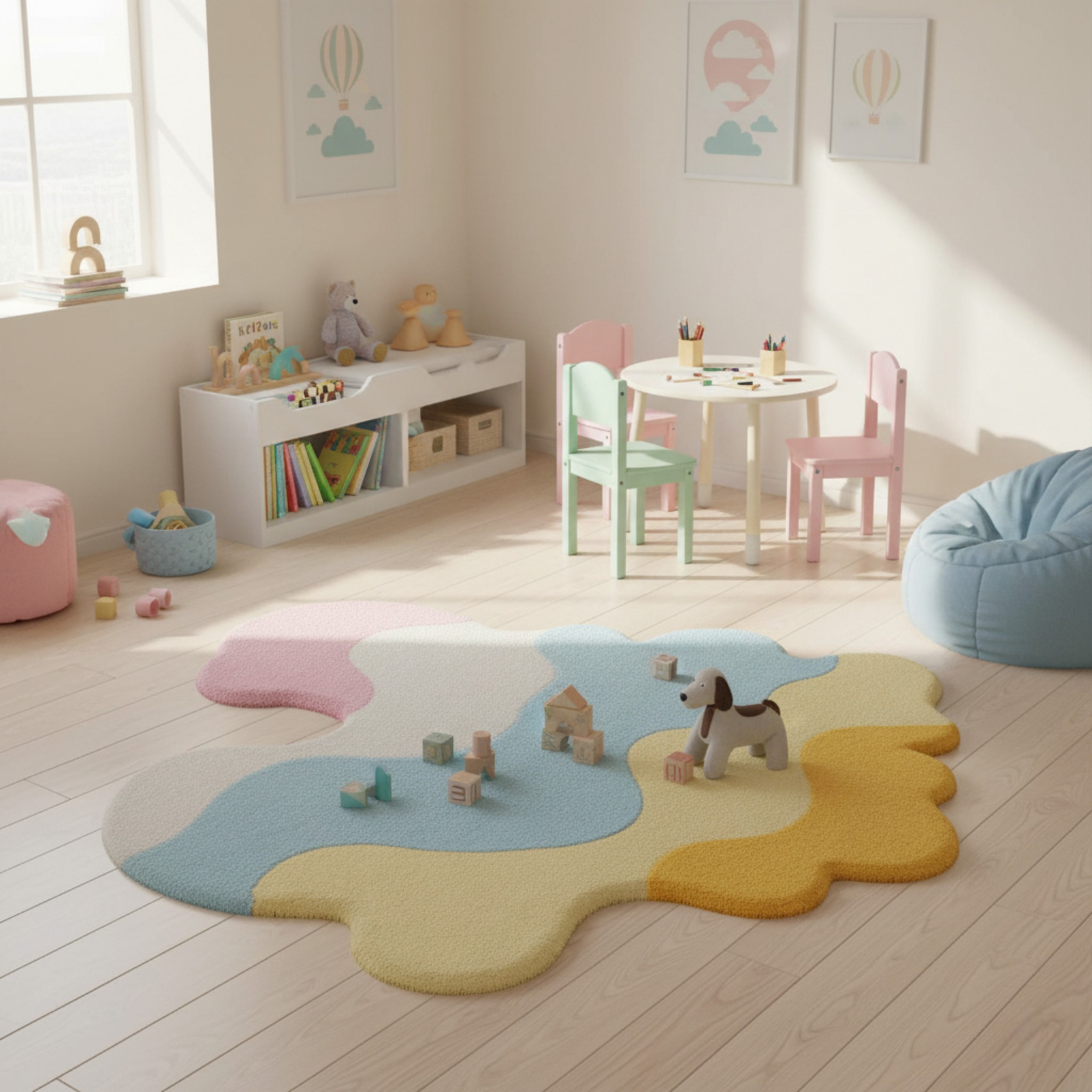 Hand Tufted Cloud Shape Kids Rug, Soft Multi-Color Play Carpet for Nursery Décor