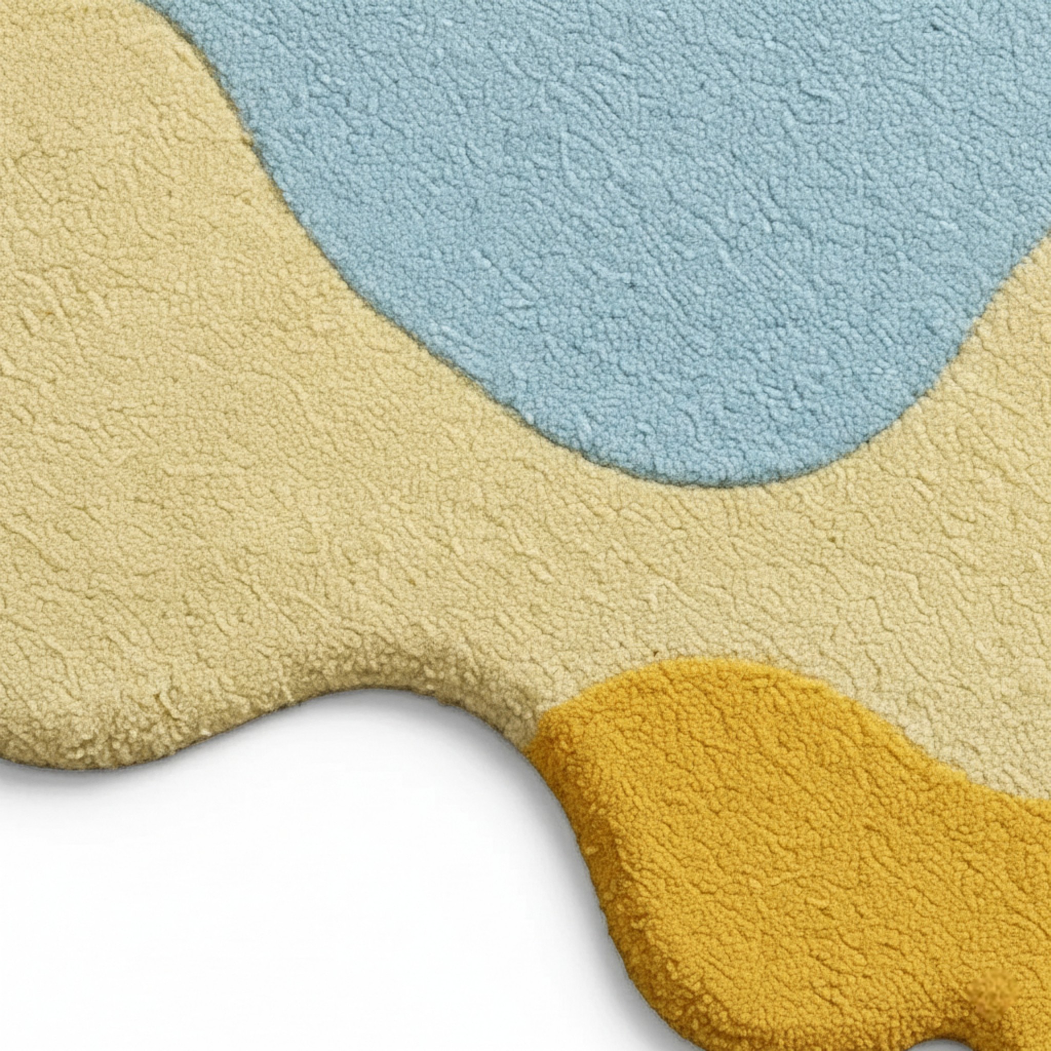 Shape: Irregular cloud with pastel waves of yellow, blue, cream, and pink