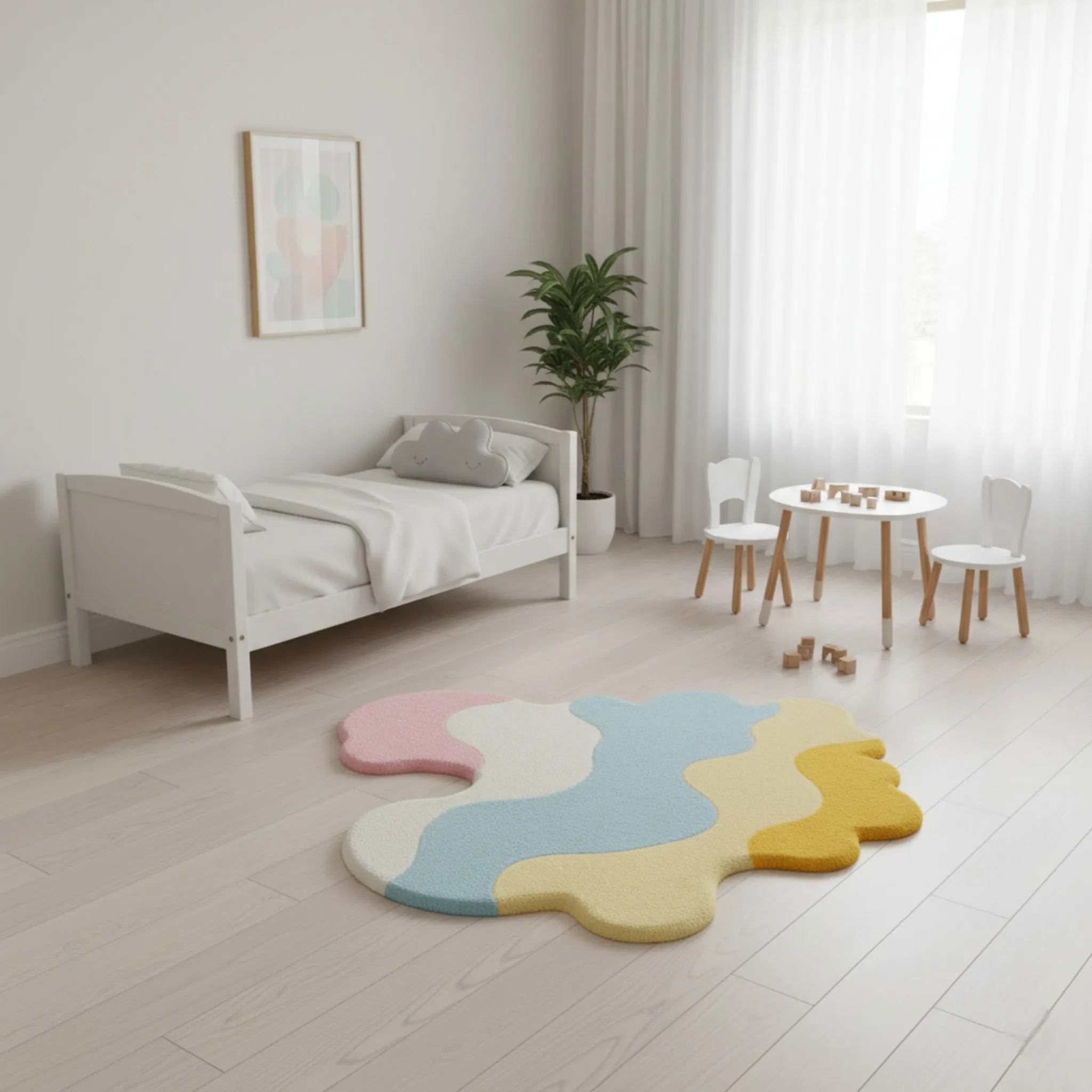 Cloud Shape Kids Rug – Hand Tufted Soft Multicolor Nursery Rug
