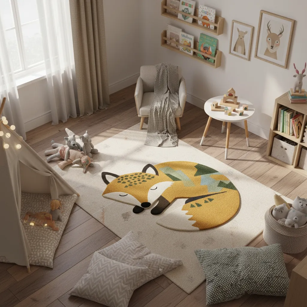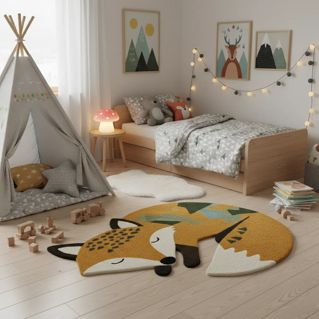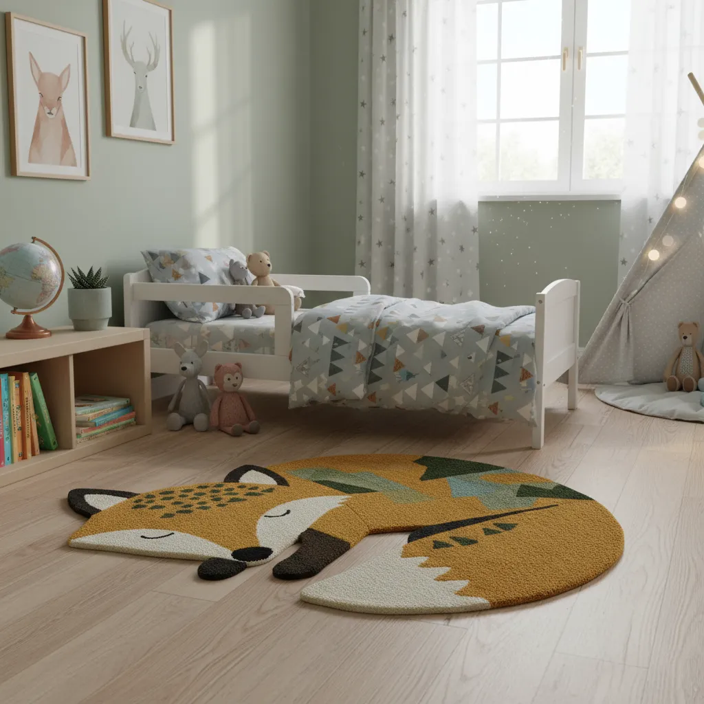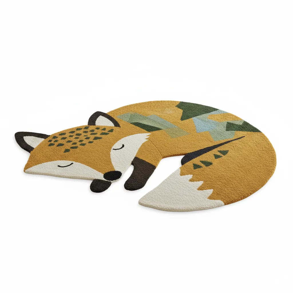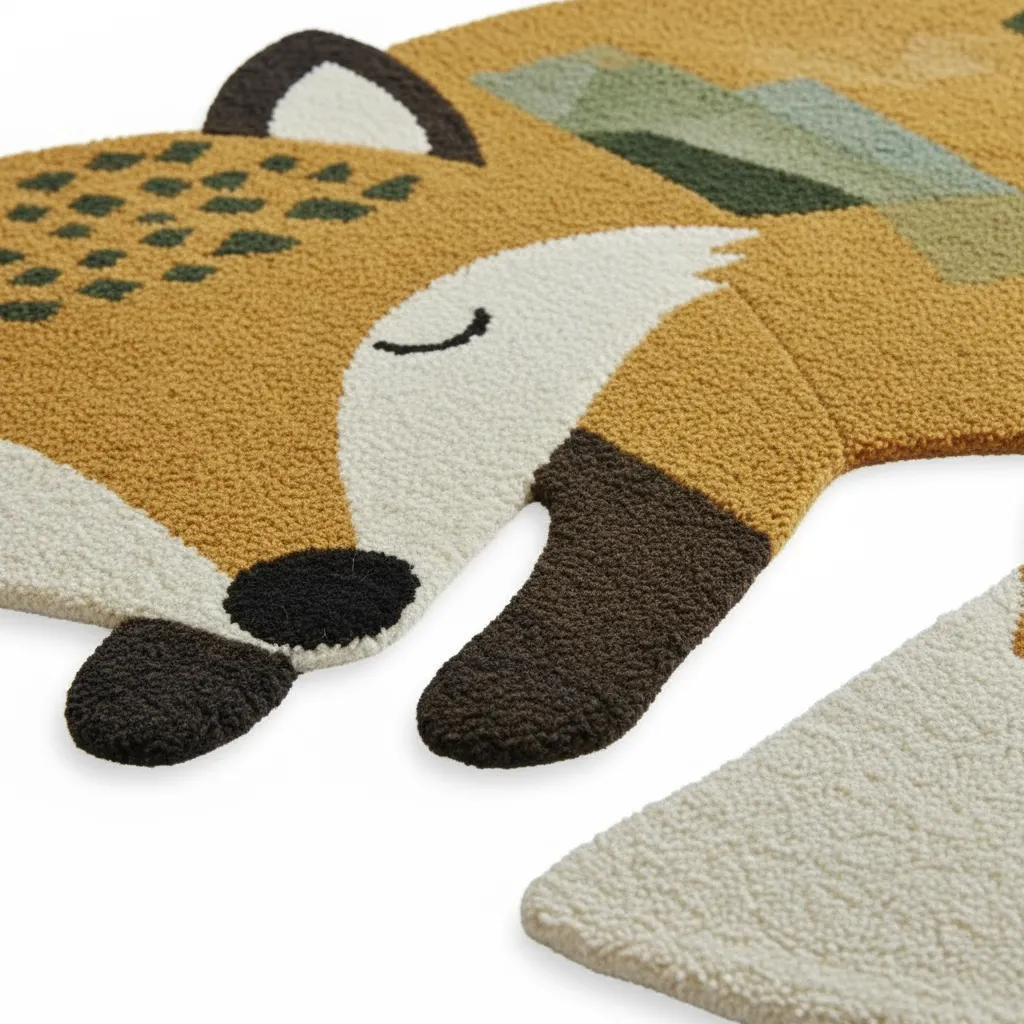 Fox Shape Wool Rug – Hand Tufted Cute Animal Kids Nursery Carpet