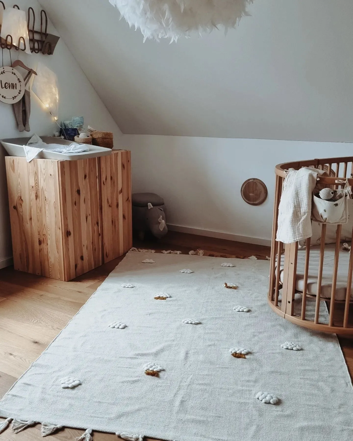 • The neutral off-white tone effortlessly complements nurseries, playrooms, and modern kids’ spaces, making it a versatile decor piece.