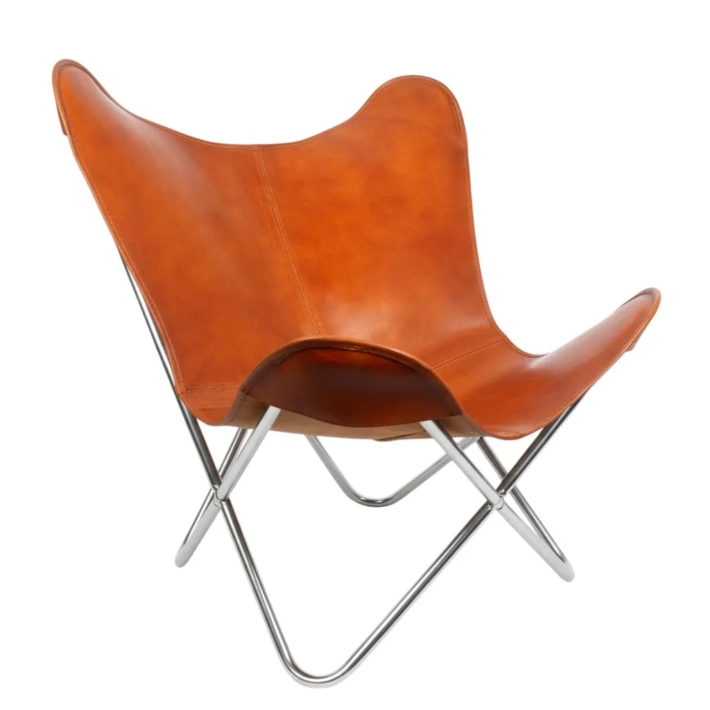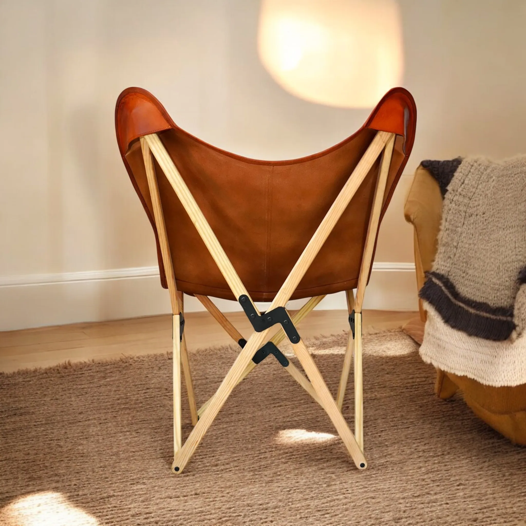 Unwind in style with our Handmade Tan Brown Butterfly Chair, a perfect blend of elegance, comfort, and craftsmanship. Designed to be a statement piece, this classic leather recliner enhances any living space with its timeless appeal.Handcrafted by skilled artisans, this chair is made from 100% genuine leather, offering a supple, rich texture that ages beautifully over time. The deep tan brown shade exudes warmth, making it a versatile addition to both modern and rustic interiors.