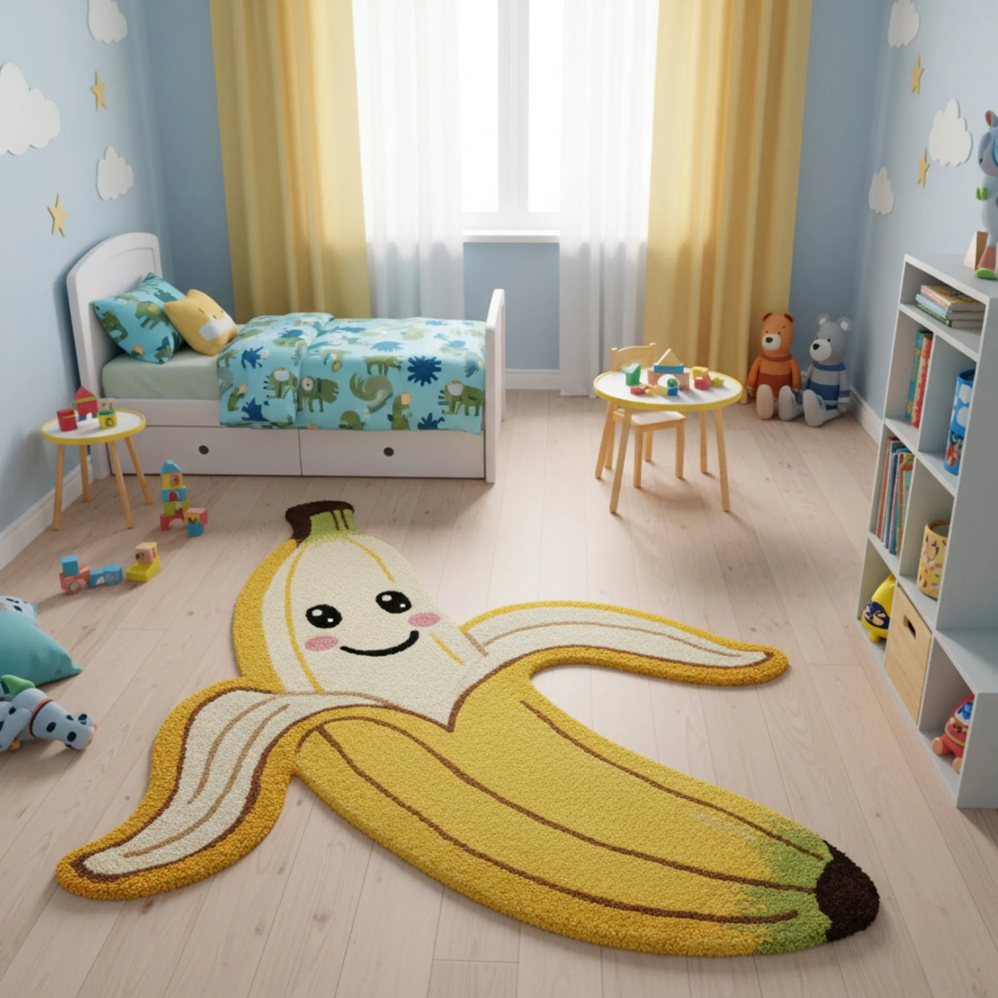 Banana Rug – Handmade Tufted Cute Fruit Carpet for Kids Room