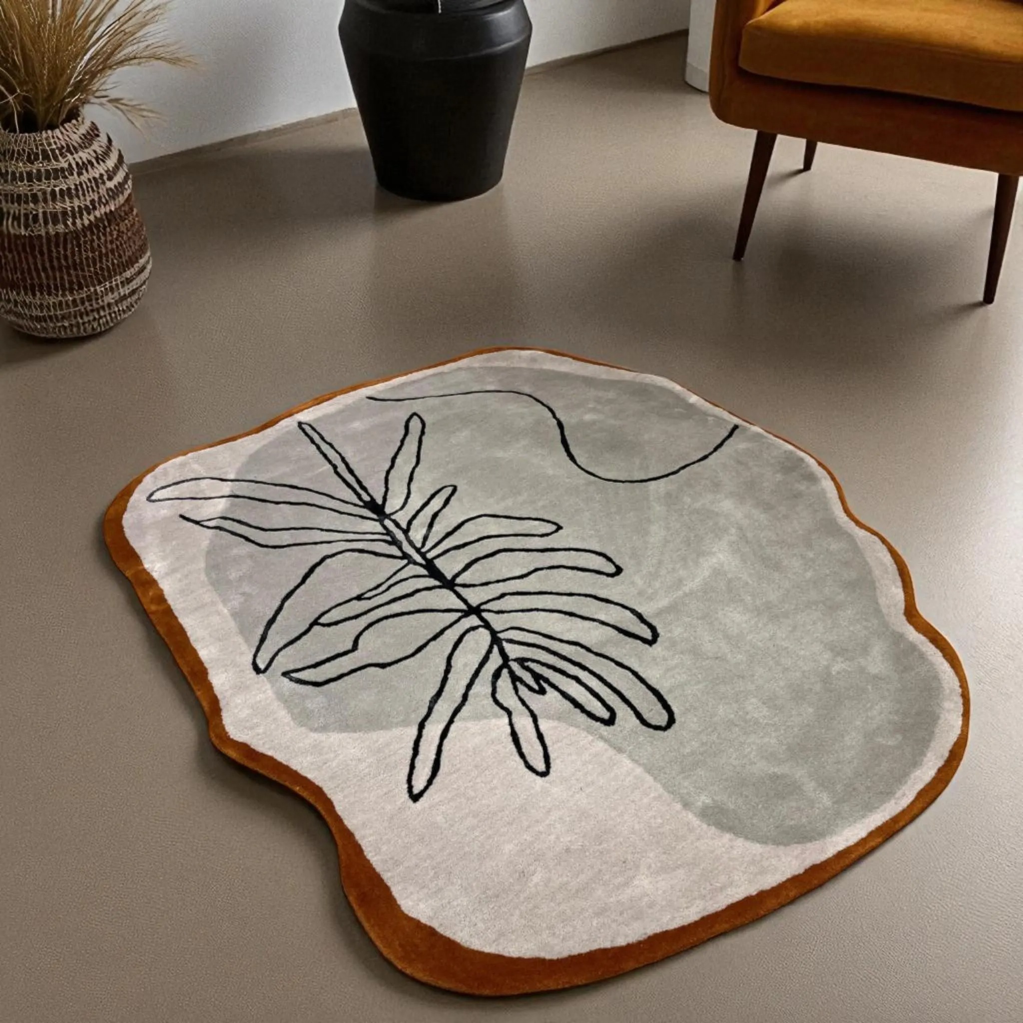 Irregular Leaf Wool Rug – Modern Hand Tufted Abstract Carpet