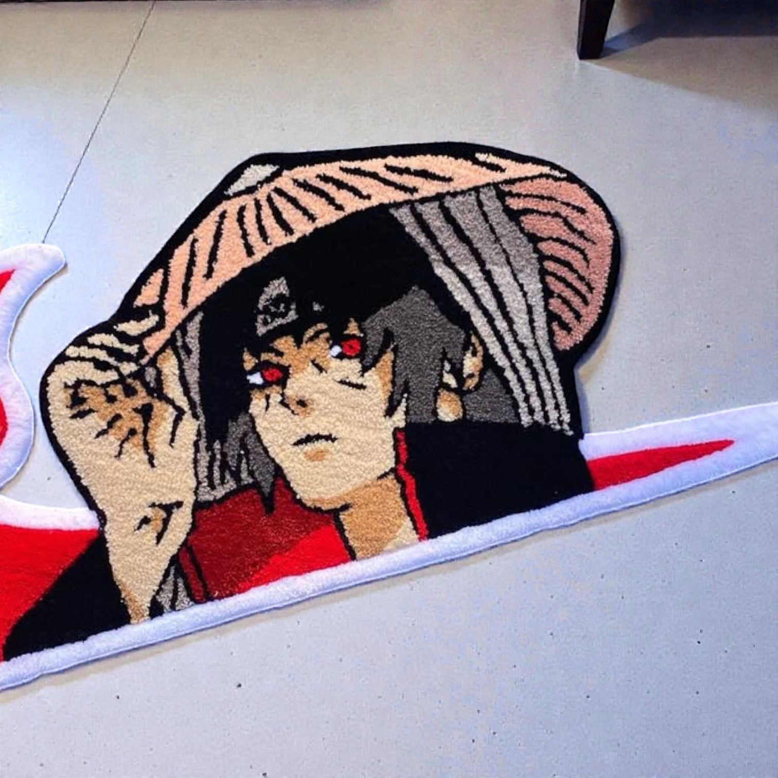 Itachi Uchiha Swoosh Handmade Tufted Rug – Anime Ninja Cloud Design Carpet