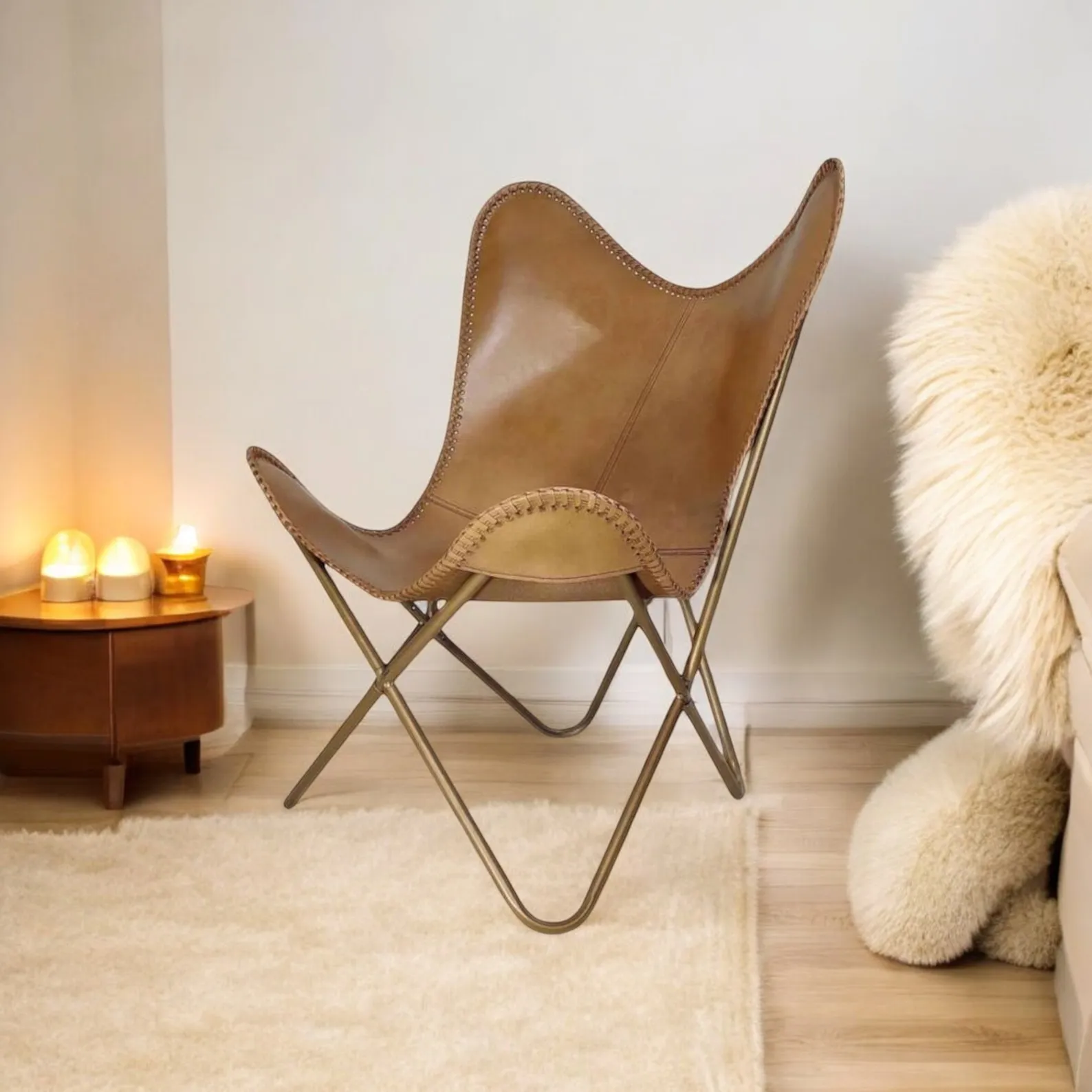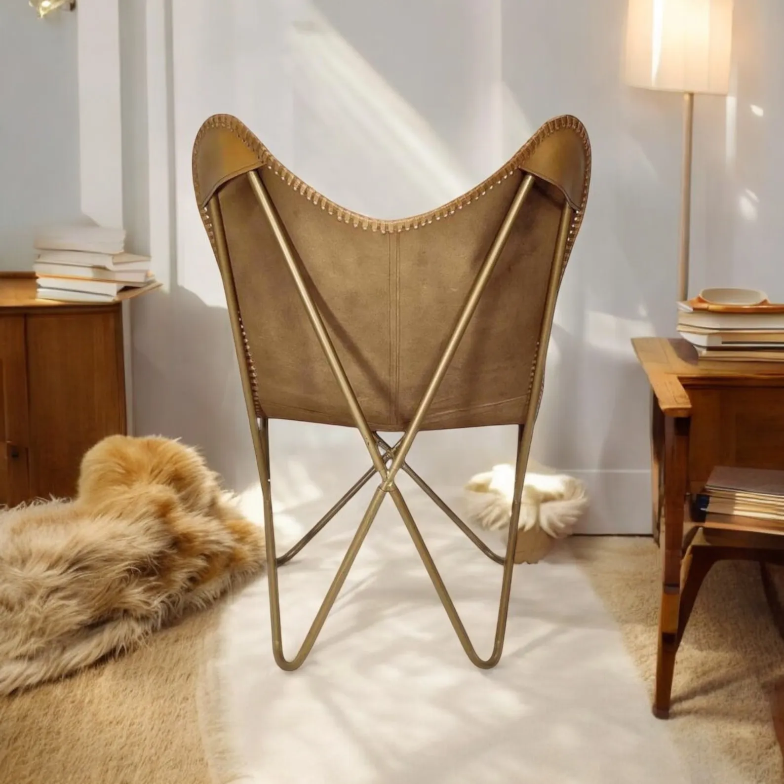 Direct exposure to sunlight can cause leather to fade and dry out. Place your Butterfly Leather Chair in a shaded area or use curtains/blinds to limit prolonged sun exposure.