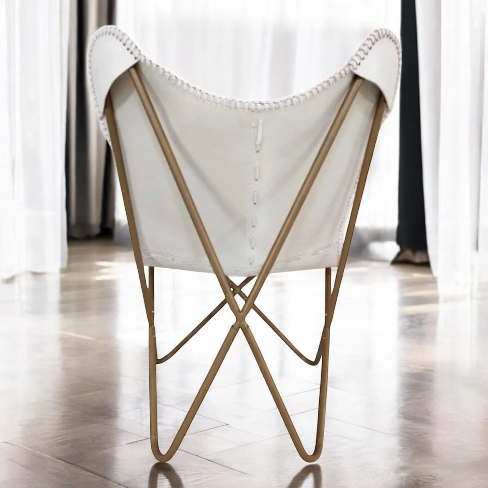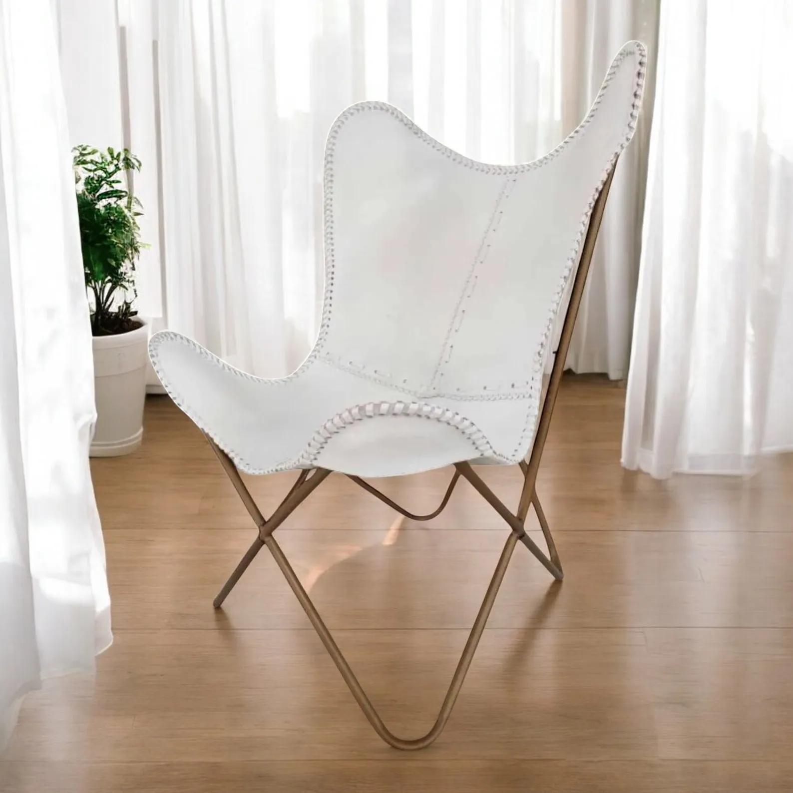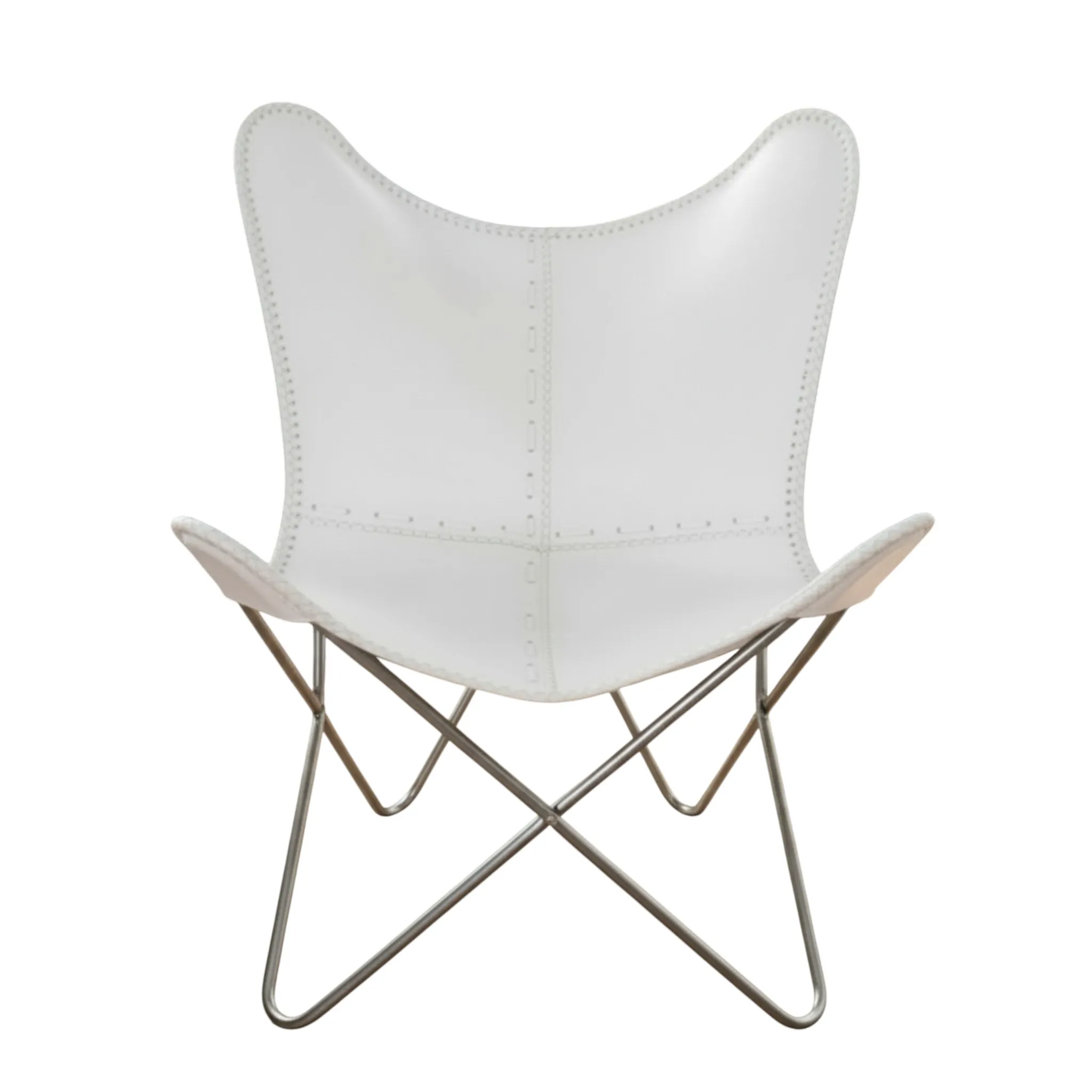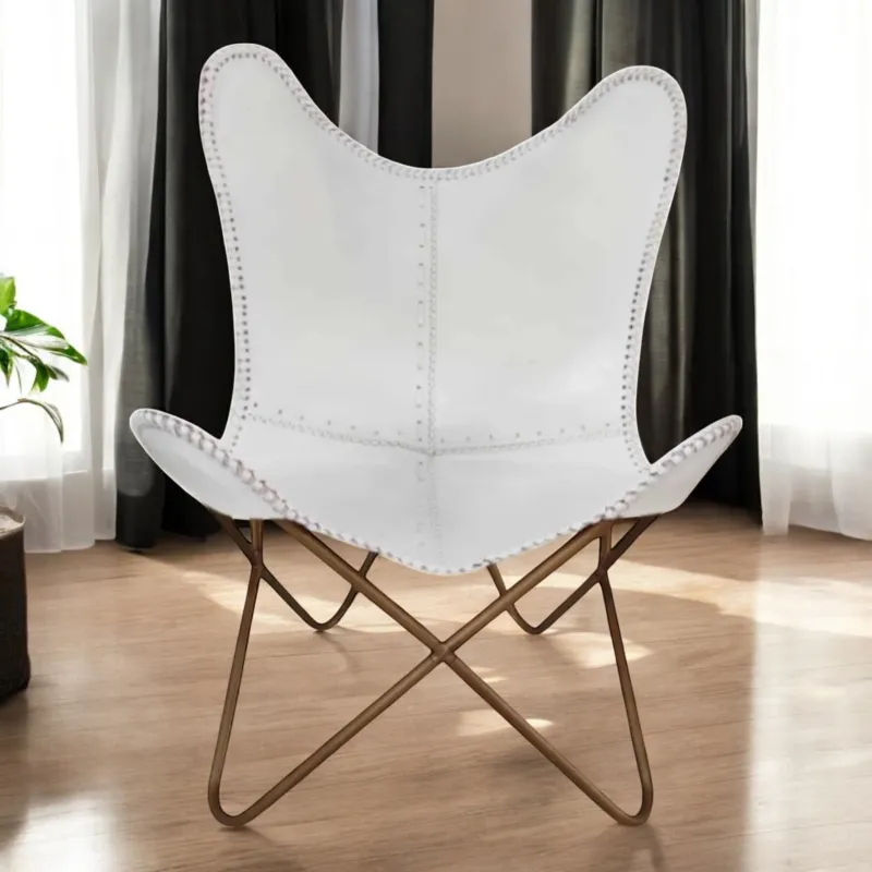 Made from premium genuine leather, its soft white hue adds a touch of elegance and serenity to any space. The leather is expertly hand-stitched, ensuring durability and a natural, lived-in texture that only gets better with time. The iconic butterfly silhouette isn’t just about looks—it’s designed to cradle your body, offering unmatched comfort and support.