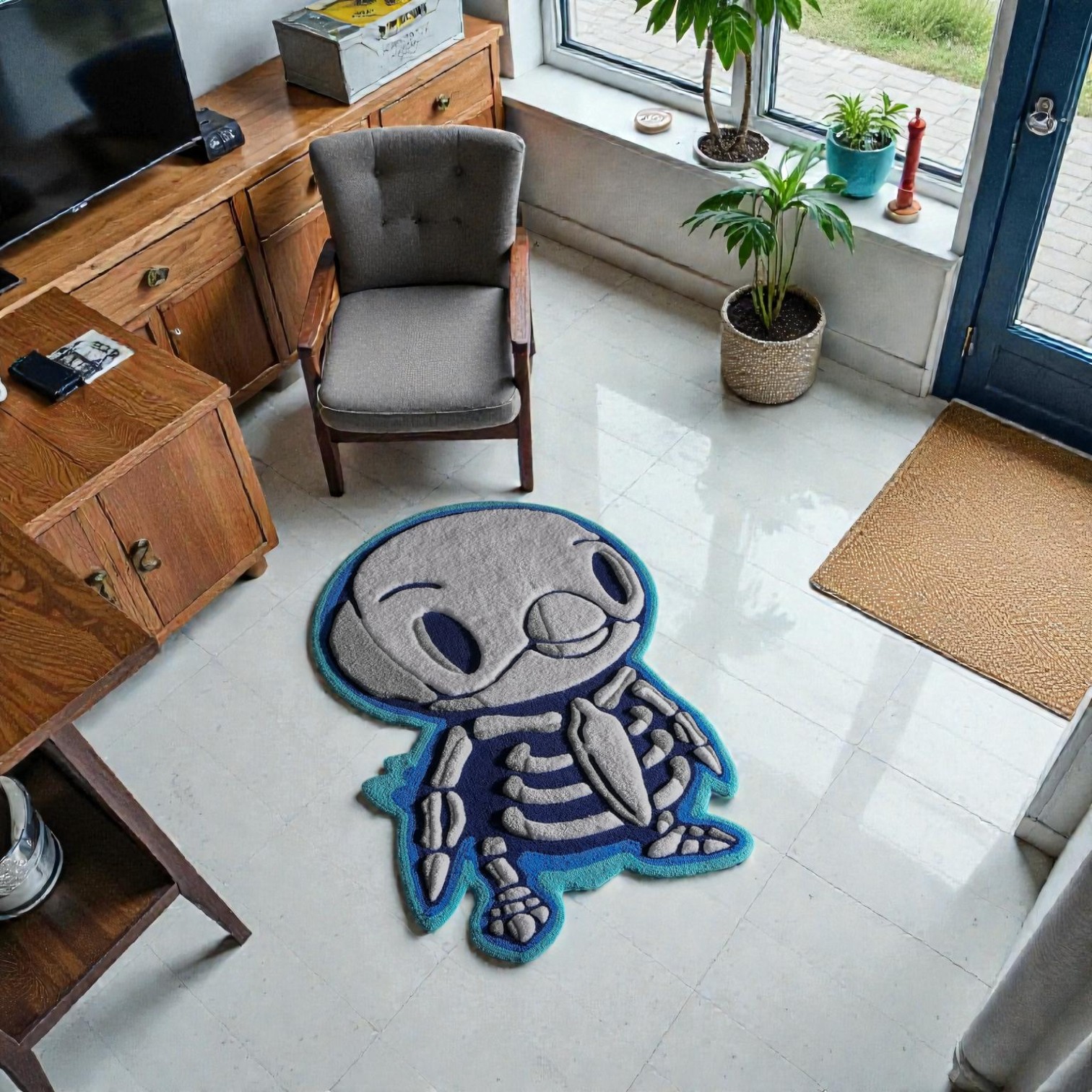 Whether you’re decorating an anime-themed room or searching for a unique gift for a Pokémon fan, this Piplup skeleton rug adds fun, creativity, and handcrafted quality to any space.