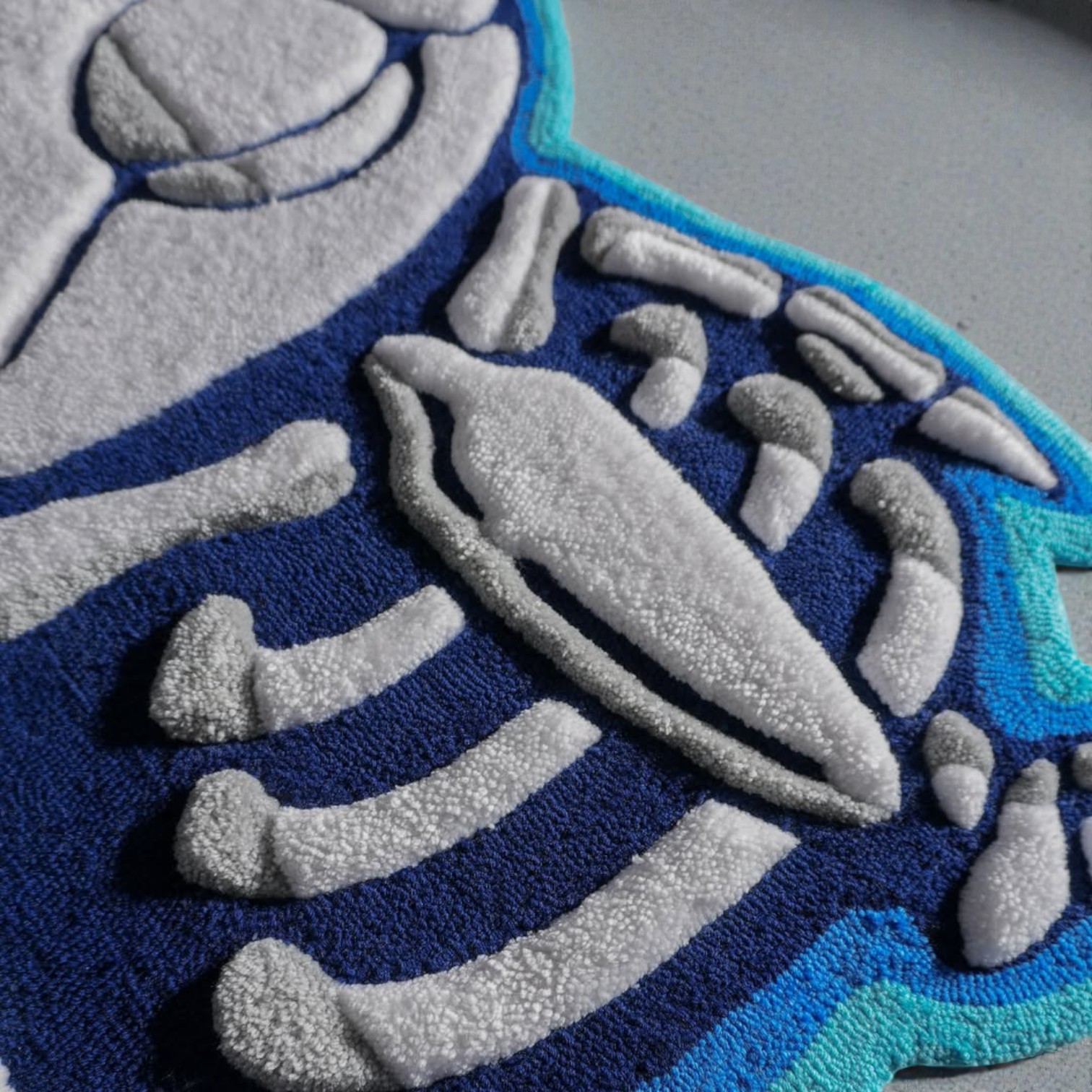 Hand-tufted by skilled artisans using premium quality wool, this rug offers a soft, plush feel underfoot while maintaining excellent durability for everyday use. The vibrant blue and neutral tones are carefully blended to highlight the detailed artwork, making it a standout piece whether placed in a gaming room, bedroom, studio, or cozy corner.